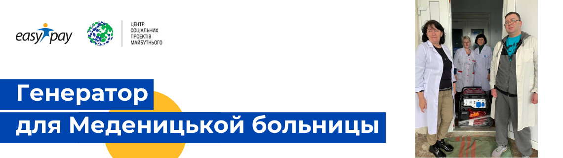 Компания EasyPay вместе с друзьями и партнерами, международным благотворительным фондом «Центр Социальных проектов будущего» закупили и передали генератор, стоимостью 24 500 грн, Меденицкой больнице Львовской области.